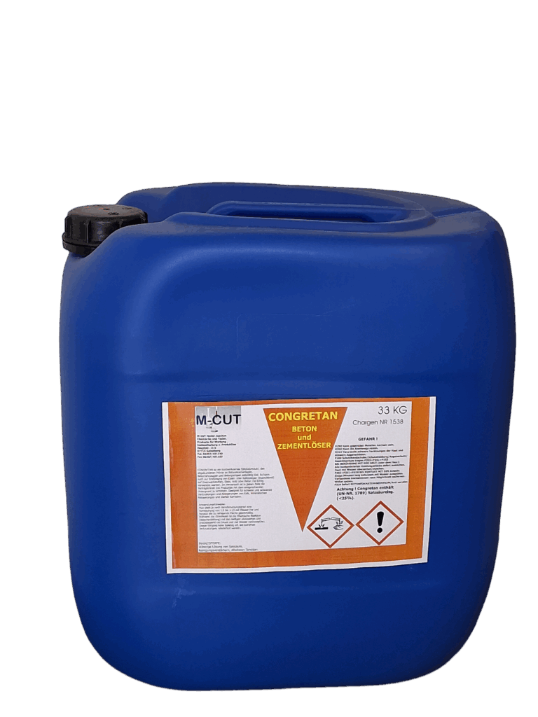 CONGRETAN ist ein hochwirksames Spezialprodukt, das entwickelt wurde, um abgebundenen Mörtel an Betonmischanlagen, Betonfahrzeugen und Betonpumpen effektiv zu lösen. Darüber hinaus eignet es sich hervorragend zur Entfernung von Eisen- und Kalkbelägen (Eisenchlorid) auf unterschiedlichen Materialien wie Eisenwerkstoffen, Stein, Holz oder Beton.