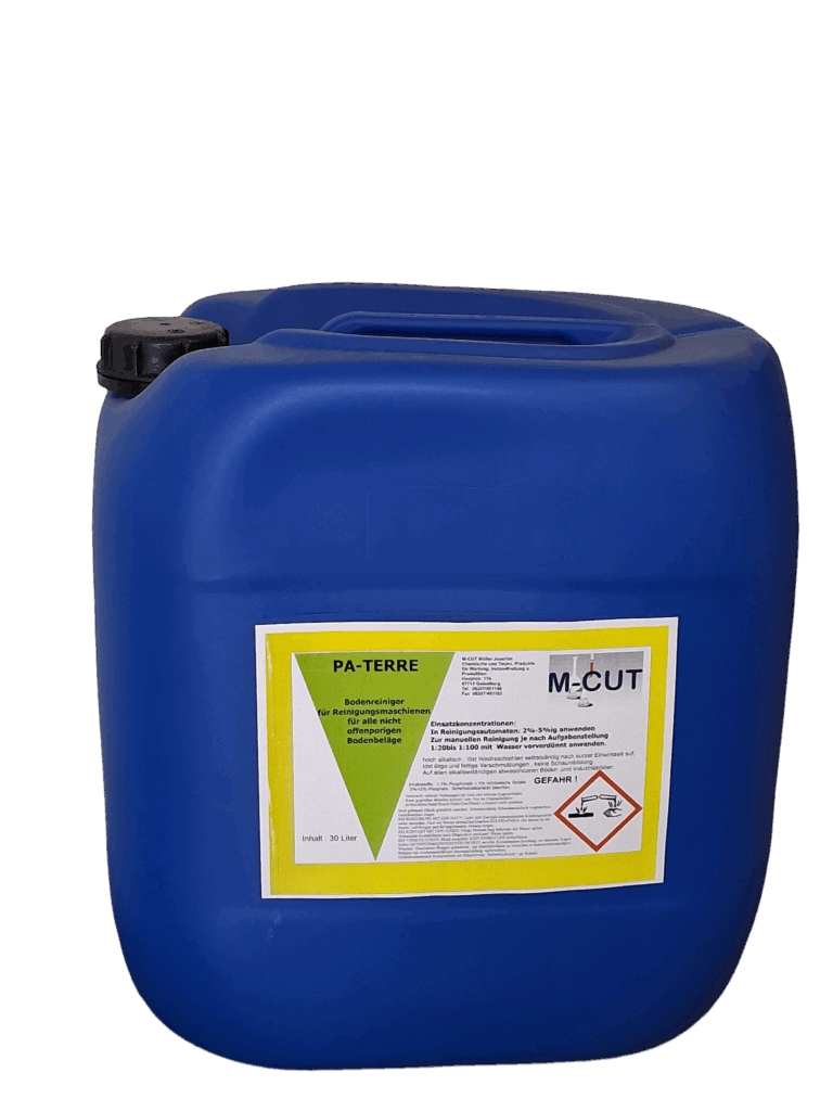 PA-TERRE ist ein hochalkalischer Reiniger, der mit einer innovativen Formel ausgestattet ist, die Wachsschichten selbstständig auflöst. Nach kurzer Einwirkzeit entfernt er mühelos ölige und fettige Verschmutzungen, ohne dabei Schaum zu bilden. Dieser hochwirksame Reiniger ist ideal für alle alkalibeständigen und abwaschbaren Böden sowie für Industrieböden geeignet.